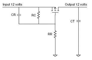 그러므로 스위치로서 P-채널 MOSFET를 활용하여 단순한 집적회로를 콘트롤한다. 우리는 응답스텝작용을 제거함으로서 돌입전류를 효과적으로 줄인다. 저 RON MOSFET의 여러 제조사는 요약하여 제공한다. 신모델과 생산라인은 새롭게 하기 위해 제작자는 선택하고 점검하여 정규적으로 추가한다. 이것을 발표하는 동안에도 이들 P-채널MOSFETS은 비교적으로 싼 가격으로 탄탈륨 캐패시터 신뢰성 증가를 위해 공급되고 있다.