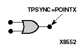 There are cases where the timing of a design must be defined from or to a point in the design that is not a flip-flop, latch, RAM or I/O pad. For example, you might want to specify a point at the output of a latch defined using a function generator instead of a latch symbol. The TPSYNC timing point identifies one or a group of these points.
