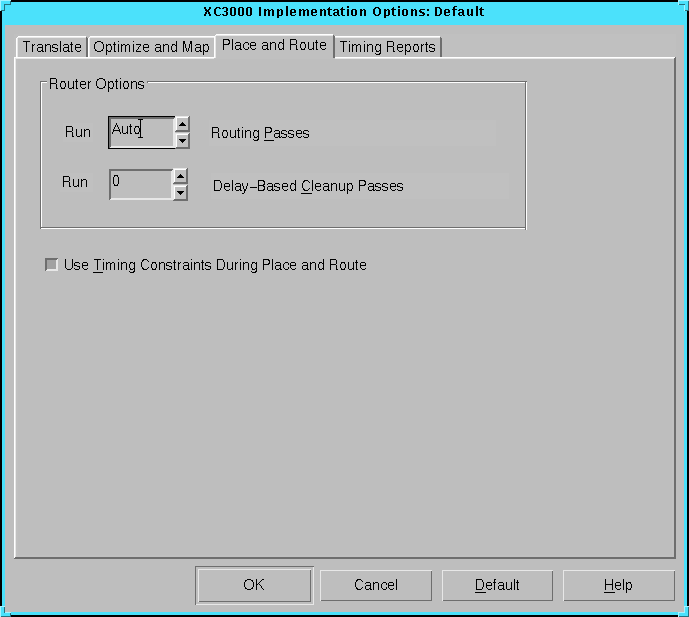Figure 5.34 XC3000 Place and Route Tab