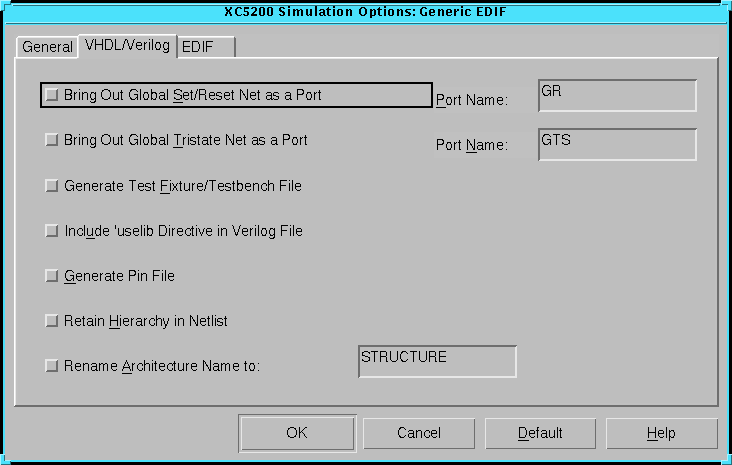 Figure 5.59 XC5200 VHDL/Verilog Tab