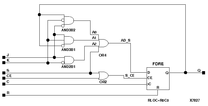 Figure 5.44 FJKRSE Implementation XC3000, XC4000E, XC4000X, XC5200, Spartan, SpartanXL, Spartan2, Virtex