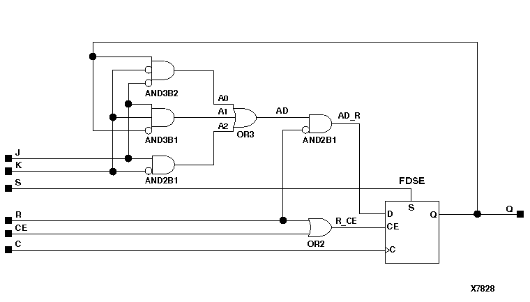 Figure 5.46 FJKSRE Implementation XC3000, XC4000E, XC4000X, XC5200, Spartan, SpartanXL, Spartan2, Virtex