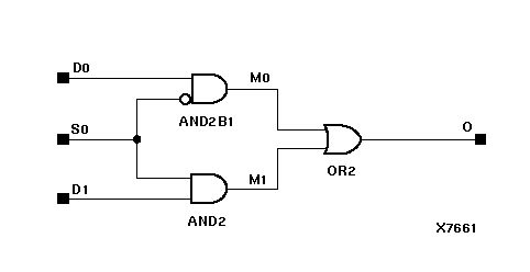 Figure 7.16 M2_1 Implementation XC3000, XC4000E, XC4000X, XC5200, XC9000, Spartan, SpartanXL, Spartan2, Virtex