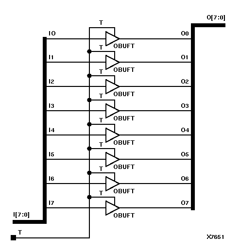 Figure 8.4 OBUFT8 Implementation XC3000, XC4000E, XC4000X, XC5200, XC9000, Spartan, SpartanXL, Spartan2, Virtex