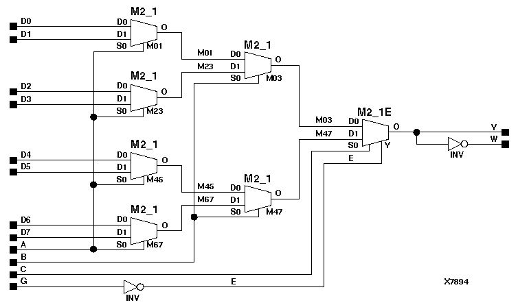 Figure 11.9 X74_151 Implementation XC3000, XC4000E, XC4000X, XC5200, XC9000, Spartan, SpartanXL