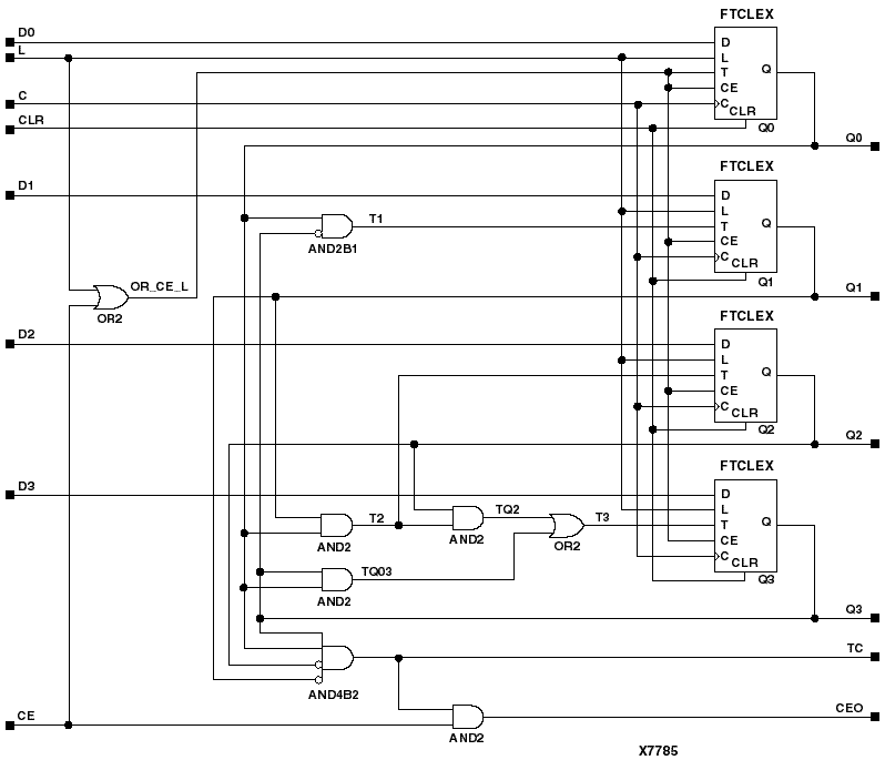 Figure 4.33 CD4CLE Implementation XC4000E, XC4000X, XC5200, Spartan, SpartanXL, Spartan2, Virtex