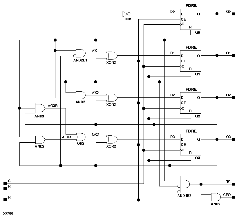 Figure 4.35 CD4RE Implementation XC3000, XC4000E, XC4000X, XC5200, Spartan, SpartanXL, Spartan2, Virtex