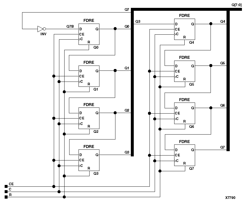 Figure 4.40 CJ8RE Implementation XC3000, XC4000E, XC4000X, XC5200, XC9000, Spartan, SpartanXL, Spartan2, Virtex