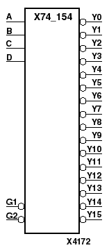 When the active-Low enable inputs G1 and G2 of the X74_154 decoder/demultiplexer are Low, one of 16 active-Low outputs, Y15 - Y0, is selected under the control of four binary address inputs A, B, C, and D. The non-selected inputs are High. Also, when either input G1 or G2 is High, all outputs are High.
