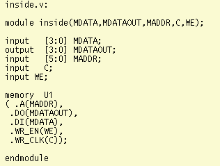 Figure 6.8 Verilog File with Instantiated LogiBLOX Module