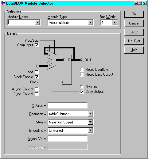 Figure 8.1 LogiBlox Module Selector - Accumulators