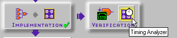 - Click the Timing Analyzer icon in the Verification box on the Project Manager's Flow tab to perform a static timing analysis.