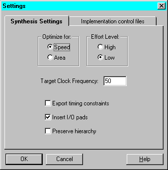 Click OK to return to the Synthesis/Implementation Settings dialog box.