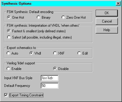 Options from the Project Manager. In the Synthesis Options dialog, you can set the following defaults: