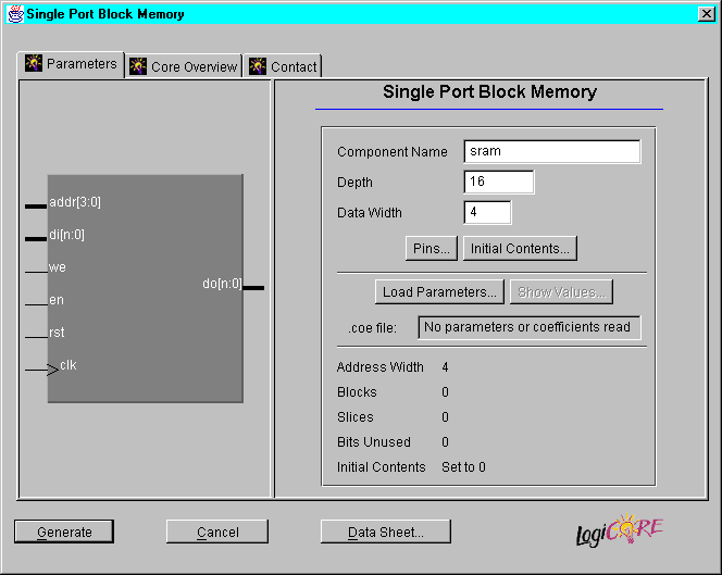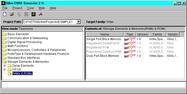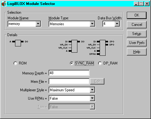 LogiBLOX modules may be generated in Foundation and then instantiated in the VHDL or Verilog code. This flow may be used for any LogiBLOX component, but it is especially useful for memory components such as RAM. Never describe RAM behaviorally in the HDL code, because combinatorial feedback paths will be inferred.