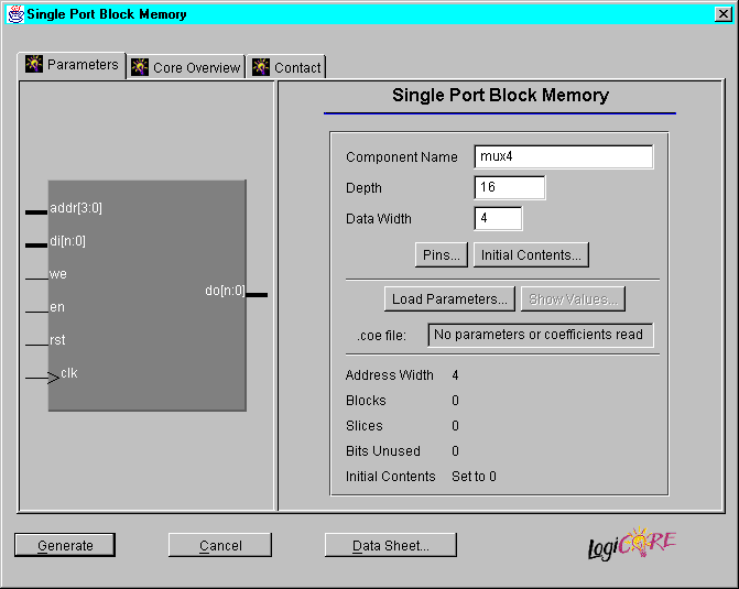 | component_name.vei | Instantiation template used to add LogiBLOX module into your Verilog source code | |