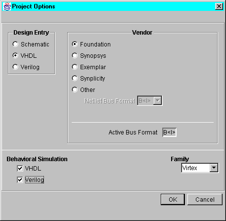 Project Options to access the project setup options. However, the Foundation Series software automatically sets the Project Options (shown in the following figure) to the appropriate values for the project. You do not need to set them manually.