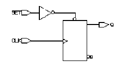 The following example provides the VHDL template for a D latch with an asynchronous set. Foundation Express generates the inference report shown following the example for a D latch with asynchronous set. The figure D Latch with Asynchronous Set shows the inferred latch.